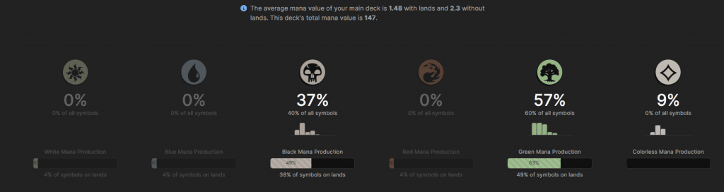 We have a pretty simple landbase, we are much heavier on green than we are on black just because of the card makeup within the deck. We also are rocking the brand new on-color “hidden” lands because free cards are free, and having that outlet/option is always very nice. We do have Card not found and Card not found, but I have chosen not to include the cycling lands as we have a decent amount of draw in the deck. We also did not focus heavily on lands having both types since almost all of our ramp is from creatures/artifacts. In the 5 testing games I played, I found this landbase to be strong and effective.