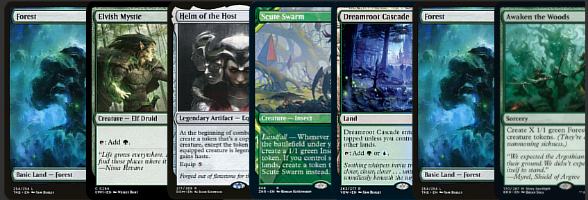 We are a creature deck, and I’m sure this may come as a surprise, but we have a ton of ways to create a crazy amount of tokens. But before we get there, we have to talk about our early game, which mostly consists of creature mana dorks like Elvish Mystic