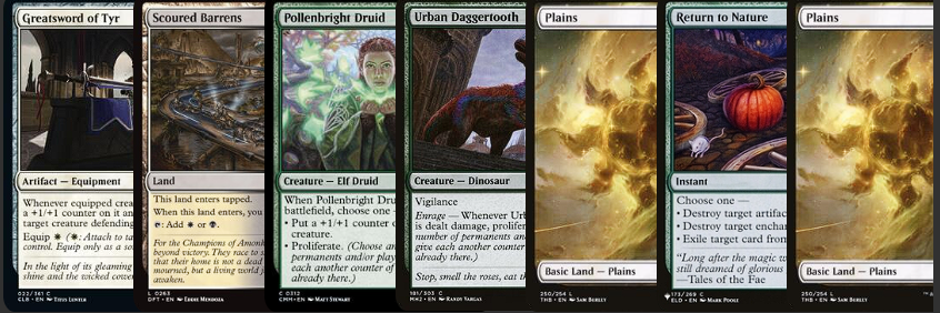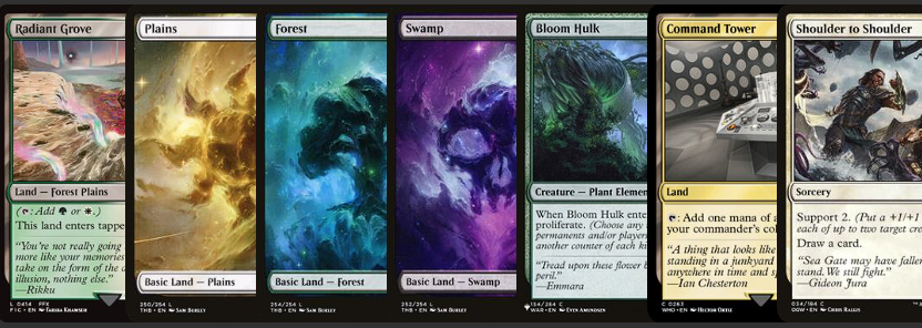 We have to have a decently complicated land base since we are in Three-Colors. We have all three on-color “thriving” lands which are great duals for the deck and adapt to what mana we need at any given point and are very good. We also have some draw in every color, like Card not found and Card not found. We, of course, have some on-color tap duals like Card not found and Card not found, which can help us get two out of three colors established early. I love this landbase and have not had much trouble with it, while being at common isn’t the best or quickest landbase it absolutely functions with no issues.