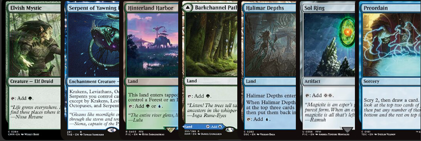 Our sorcery package is where most of our ramp lies with key ramp spells like FarseekNature's Lore, and Skyshroud Claim. We have a ton more, but they all have the same purpose: get us more lands on the field. We have Ponder and Preordain, which allows us to manipulate the top of our deck and get some card draw. See the Unwritten is an awesome card that we can ramp into that lets us get a creature onto the field pretty early and can swing the game in our favor. Last March of the Ents is another wild spell that can be nearly game-ending, often drawing us 8-10 cards and then letting us dump our hand of all creatures, which can be a huge momentum swing for us.