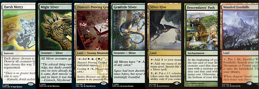 We are a 5 color deck so getting all of our colors is pretty important to us so we of course have Card not found and Card not found which are both great ways to grab 2 colors of mana. From here our sorcery package deviates to cards that are anti-sliver hate like Card not found, Card not found and Card not found all of which are great ways to clear our opponents board and leave the sliver pile intact! Card not found is a much more aggressive board clear that will wipe us as well but is great in games where we are behind! Card not found is another great card that can help us clear the board! Our last sorcery is Card not found which is a great way to get all of our slivers back great after a board wipe!