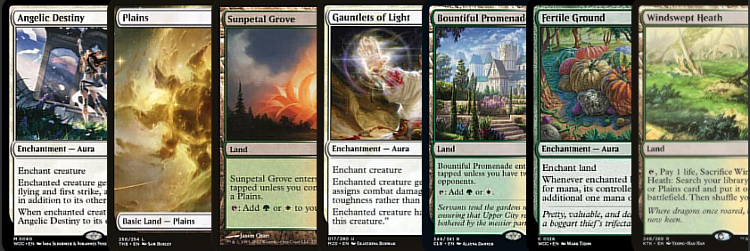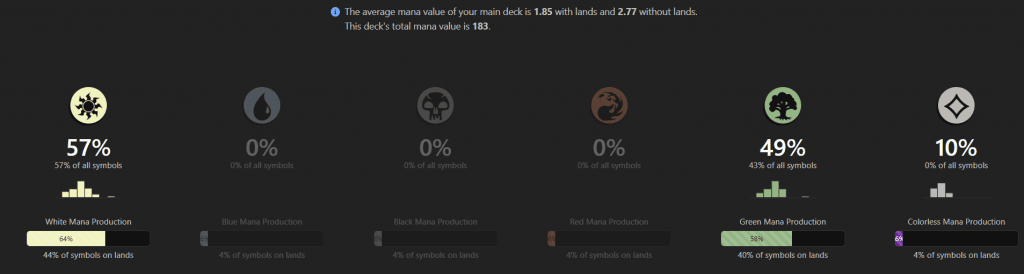 Our land base has the best of for the Selesyna Lands, fetches like Card not found, Card not found, Shocks like Card not found and even the filter lands in Card not found there is a lot of great ways to have both Green and White mana but overall there is not a ton of complexity within our manabase!