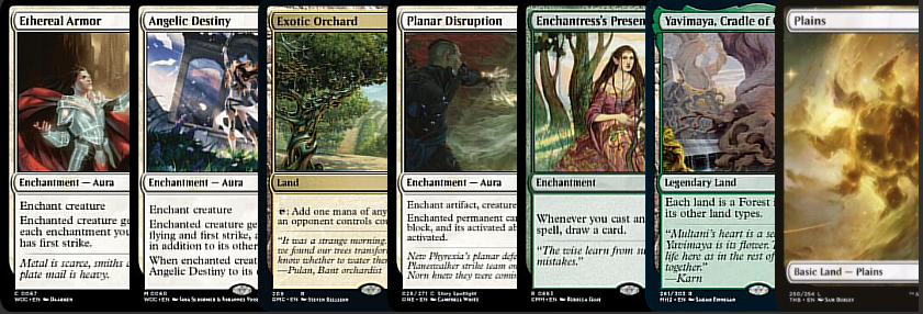 We only have one planeswalker but they are pretty sweet in Card not found who is the perfect planeswalker for enchantments! Calix’s plus allows us to look at the top four and get an enchantment can be perfect when we are looking for key enchantments! Calix’s -3 can be a pretty crazy removal spell that keeps permanents away for a long time! Lastly Calix’s ult allows us to get everything back, perfect after a big board wipe or targeted enchantment hate!